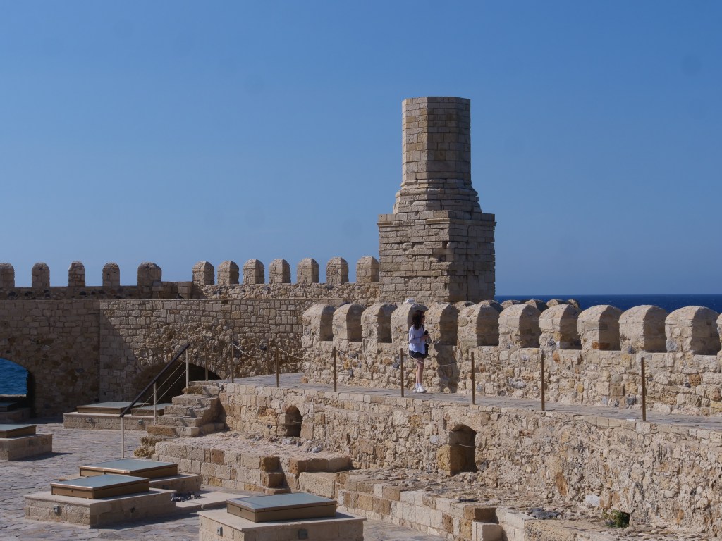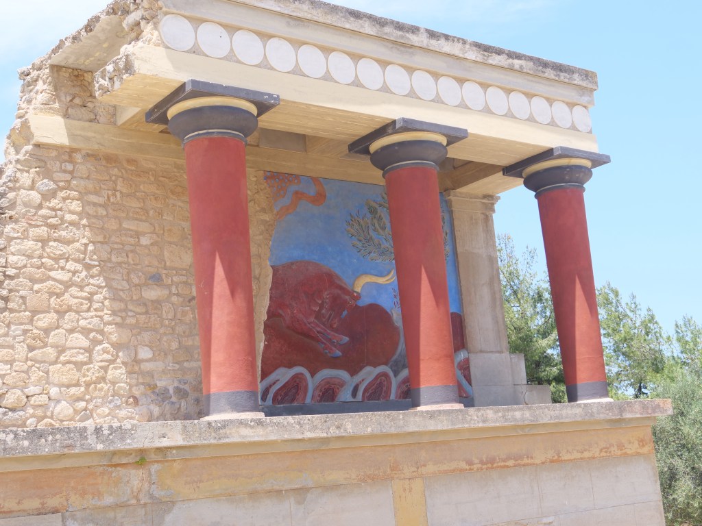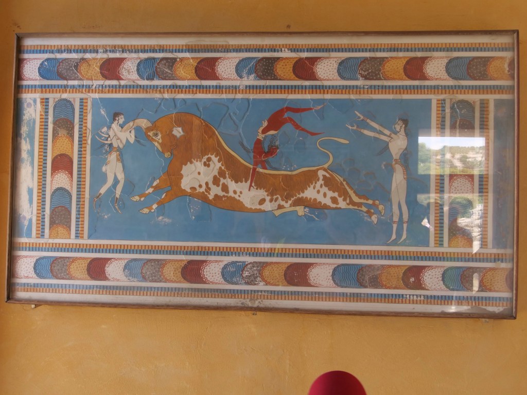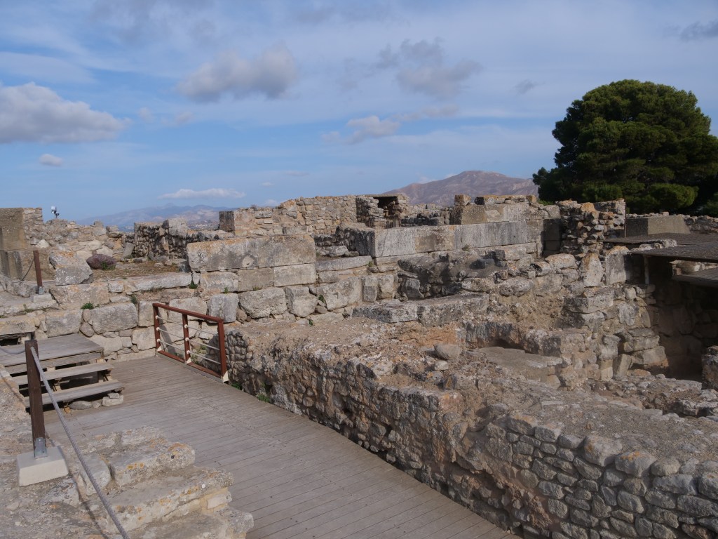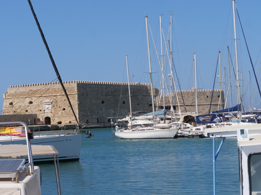 This first posting contains photos of our time in Crete…wonderful historic locations as well as the bonus of lovely weather. In Crete we stayed largely in the capital, Heraklion as well as one night in Hania. Most of our time we spend visiting ancient ruins…the main one of course was the Palace of Knossis which dates back to 1700 BCE, however other Minoan palaces visited included Phaistos and Gortyn. We also visited the Fortezza fortress overlooking the city of Rethymno, build in the 16th century by Venetians who occupied Crete between 1200 and 1670, and the ruins on the island of Spinalonga also built by Venetians in the late 1500’s. Spinalonga had been used in the early 20th century as a leper colony.